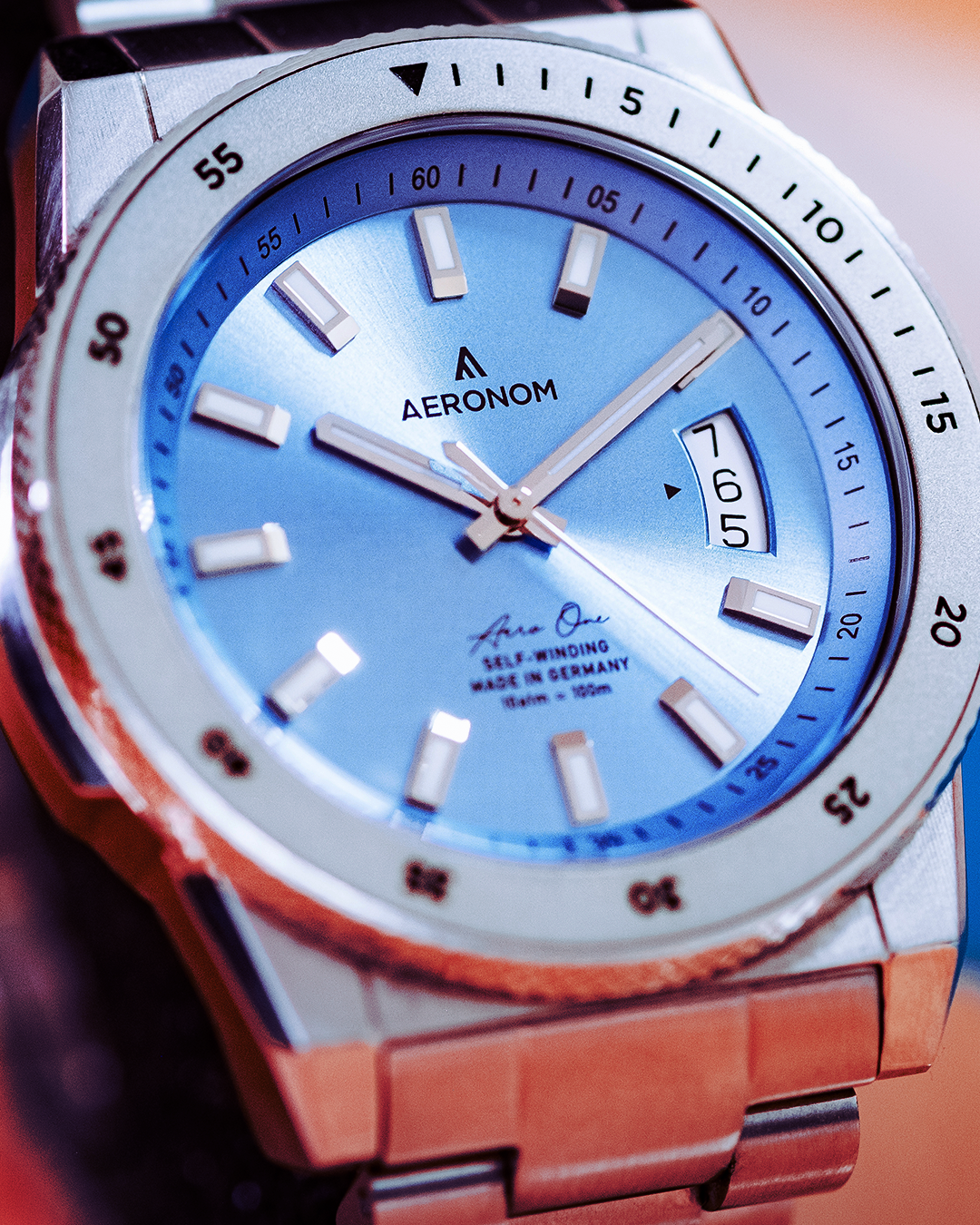 We have equipped the AERO ONE - Carolina Blue with the most fierce caliber from Switzerland, the also absolutely iconic 2824-2 ETA movement, the GOAT of Swiss movements.